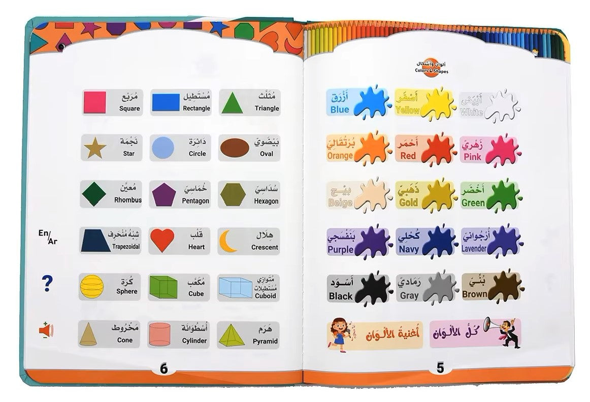 الحروف الأبجدية، الأرقام، الألوان والأشكال،