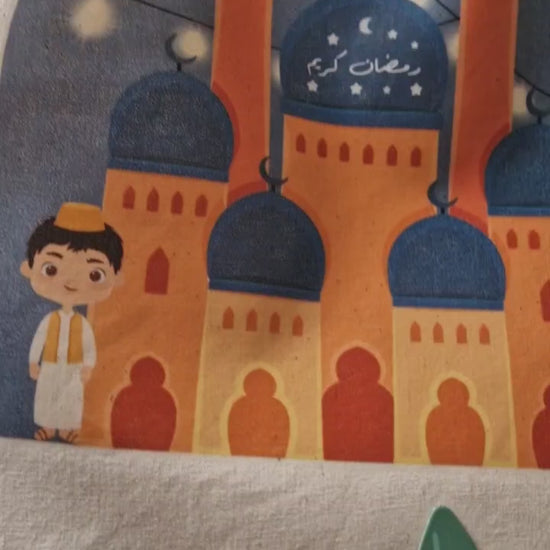 🤍 Toller, praktischer Kordelzug-Beutel mit viel Liebe designend für Kindergarten, oder zum verschenken von Büchern zu Ramadan.