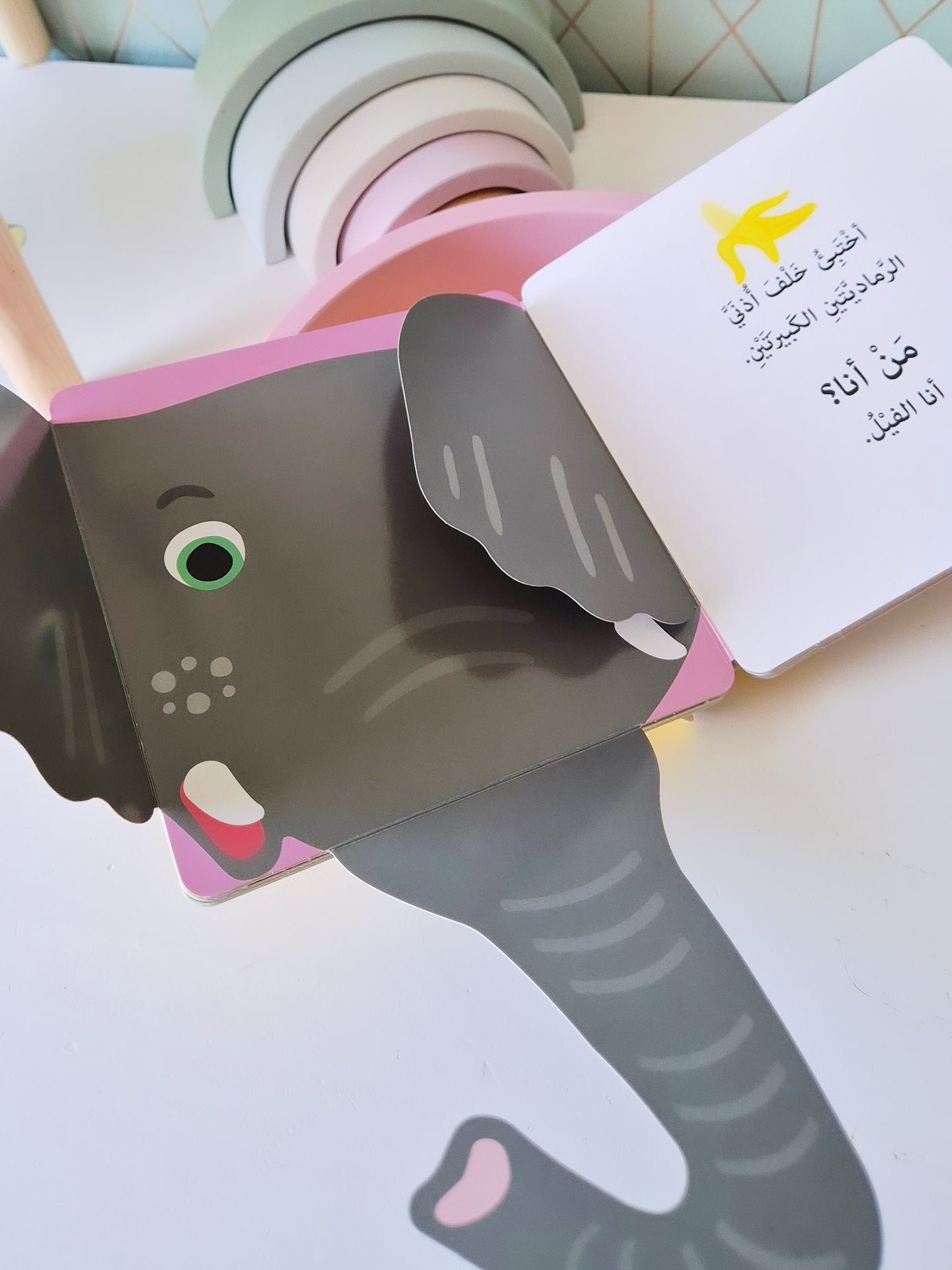 كتاب تفاعلي ممتع يُشجّع الطفل على الاستكشاف واللعب! يرفع أذان وأقدام الحيوانات ليكتشف من يختبئ خلفها في كل صفحة.