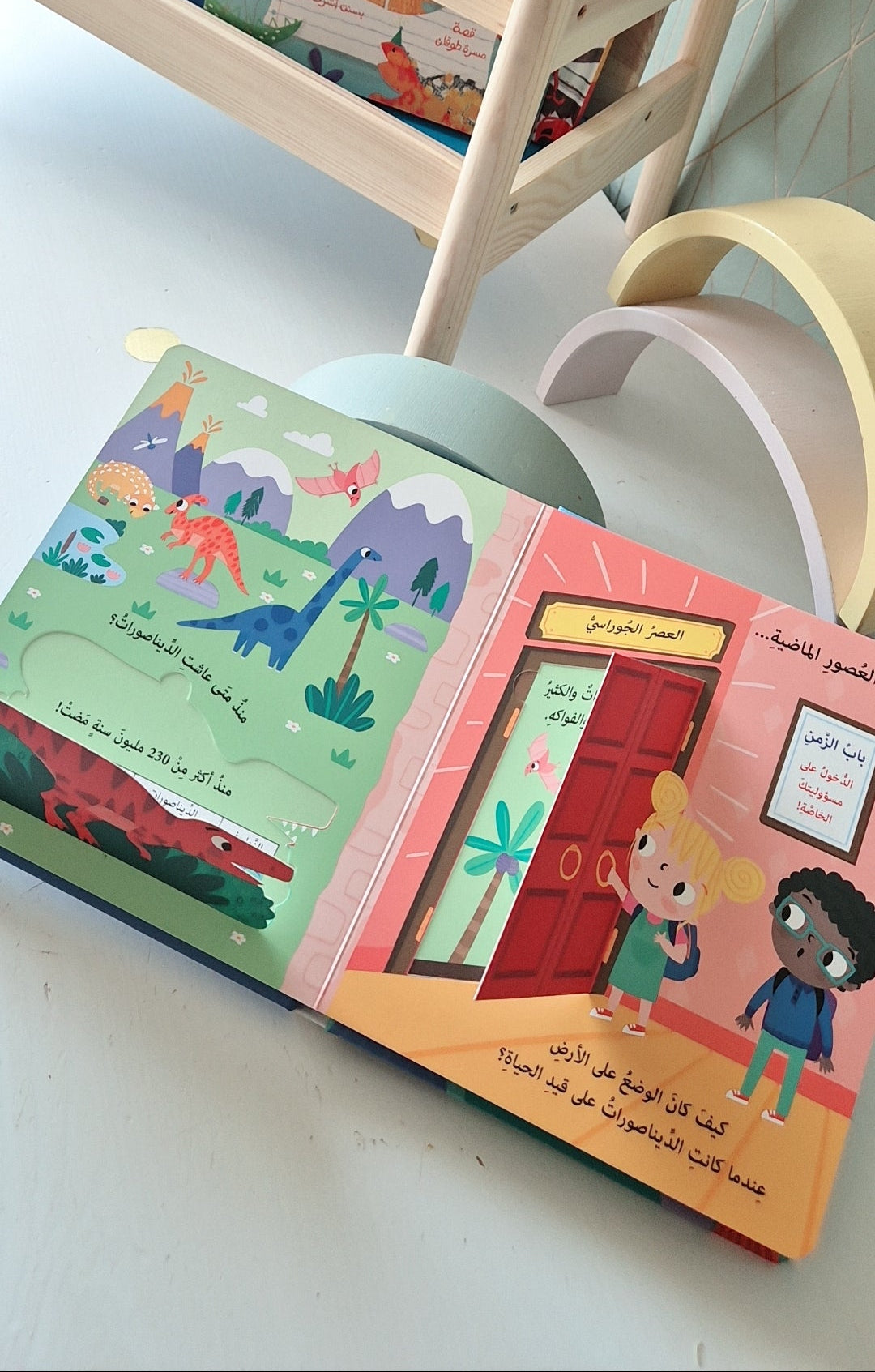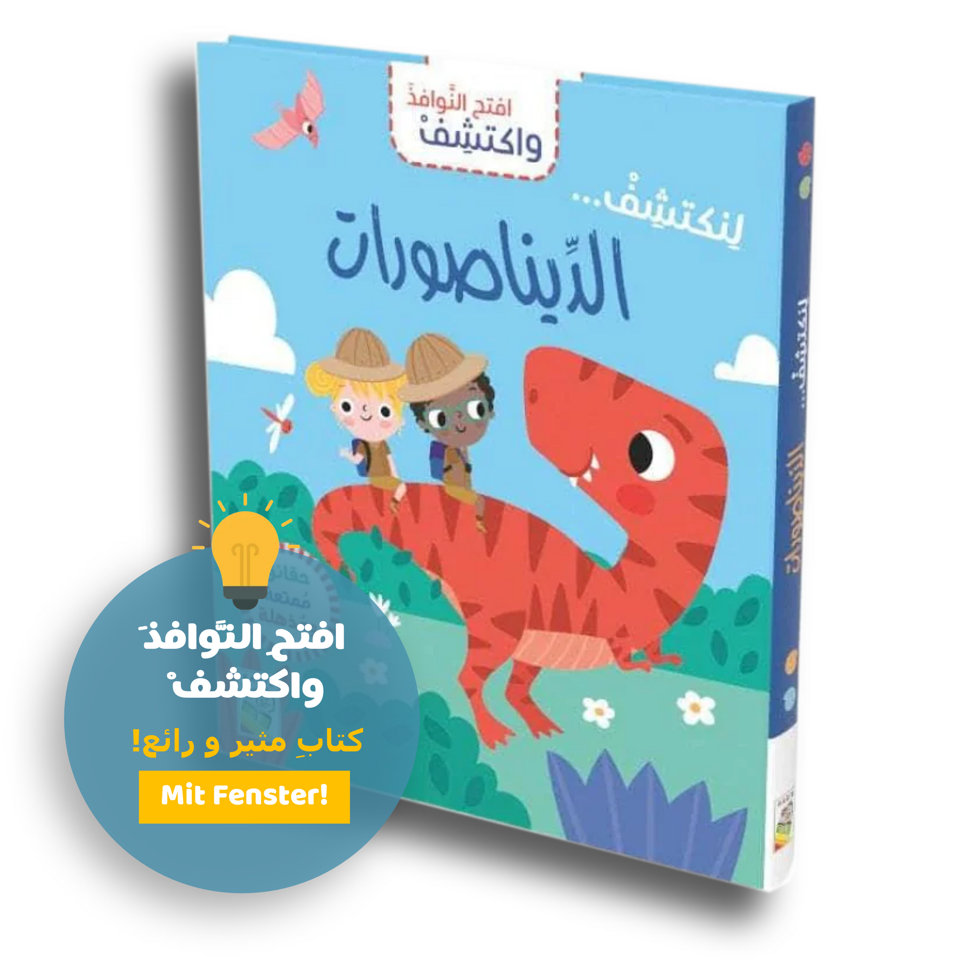 افتح النوافذ واكتشف" هو كتاب مليء بالمفاجآت والمعلومات الشيقة عن الديناصورات . يتيح للأطفال رفع النوافذ الصغيرة في الصفحات، ليكتشفوا ما تخبّئه من حقائق ممتعة