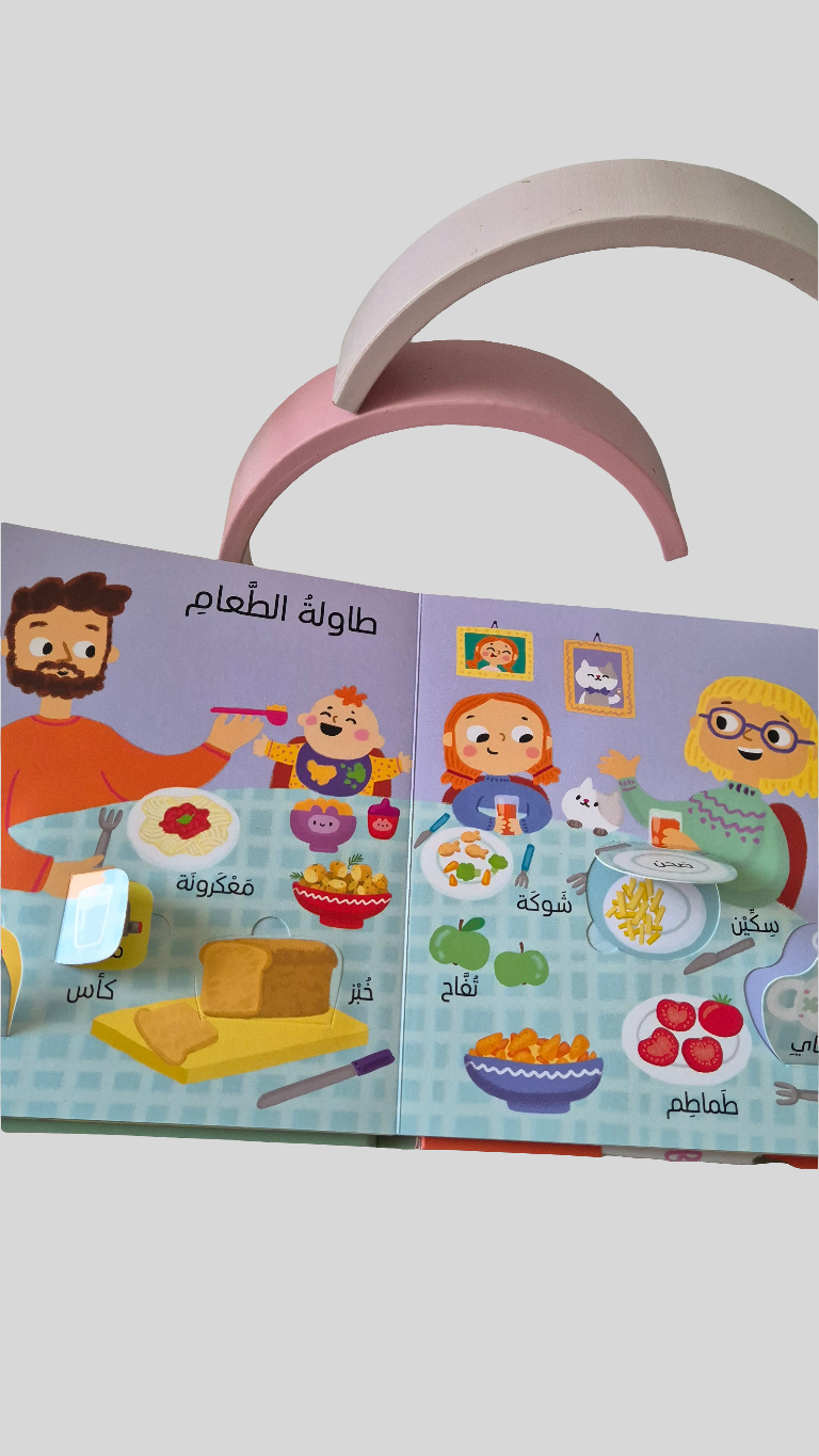 ألعابٌ وملابسٌ وطعامٌ...، قُمْ بتنميةِ مفرداتِ طفلِكَ الصَّغيرِ بسُهولةٍ بفضلِ الرُّسومِ التَّوضيحيَّةِ النَّابضةِ بالحياةِ، وبمساعدةِ اللَّوحاتِ المرحةِ. أكثرُ من 100 كلمةٍ أساسيَّةٍ تتعلَّقُ بعالمِ الطِّفلِ ليكتشفَها طفلُكَ ويتعلَّمَها!