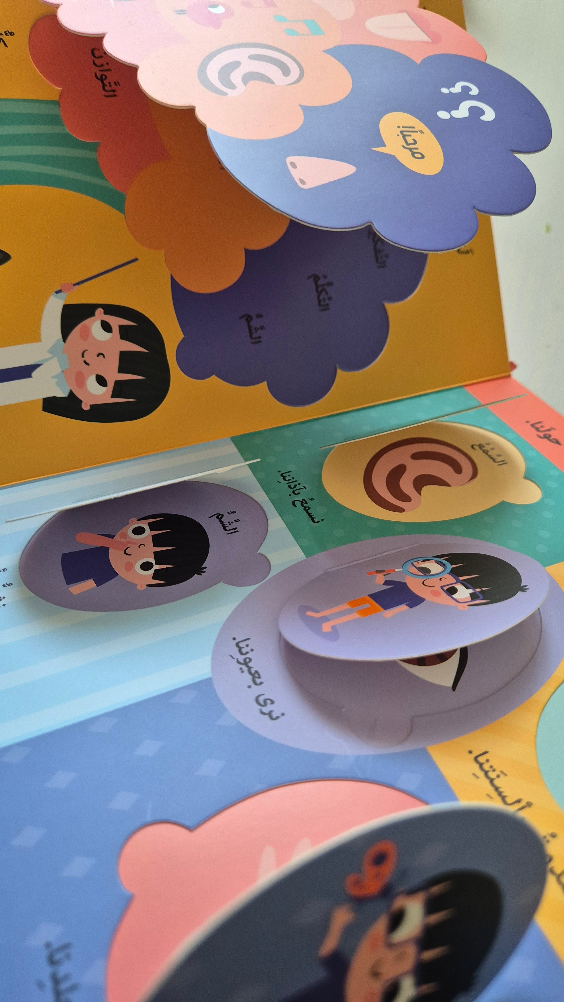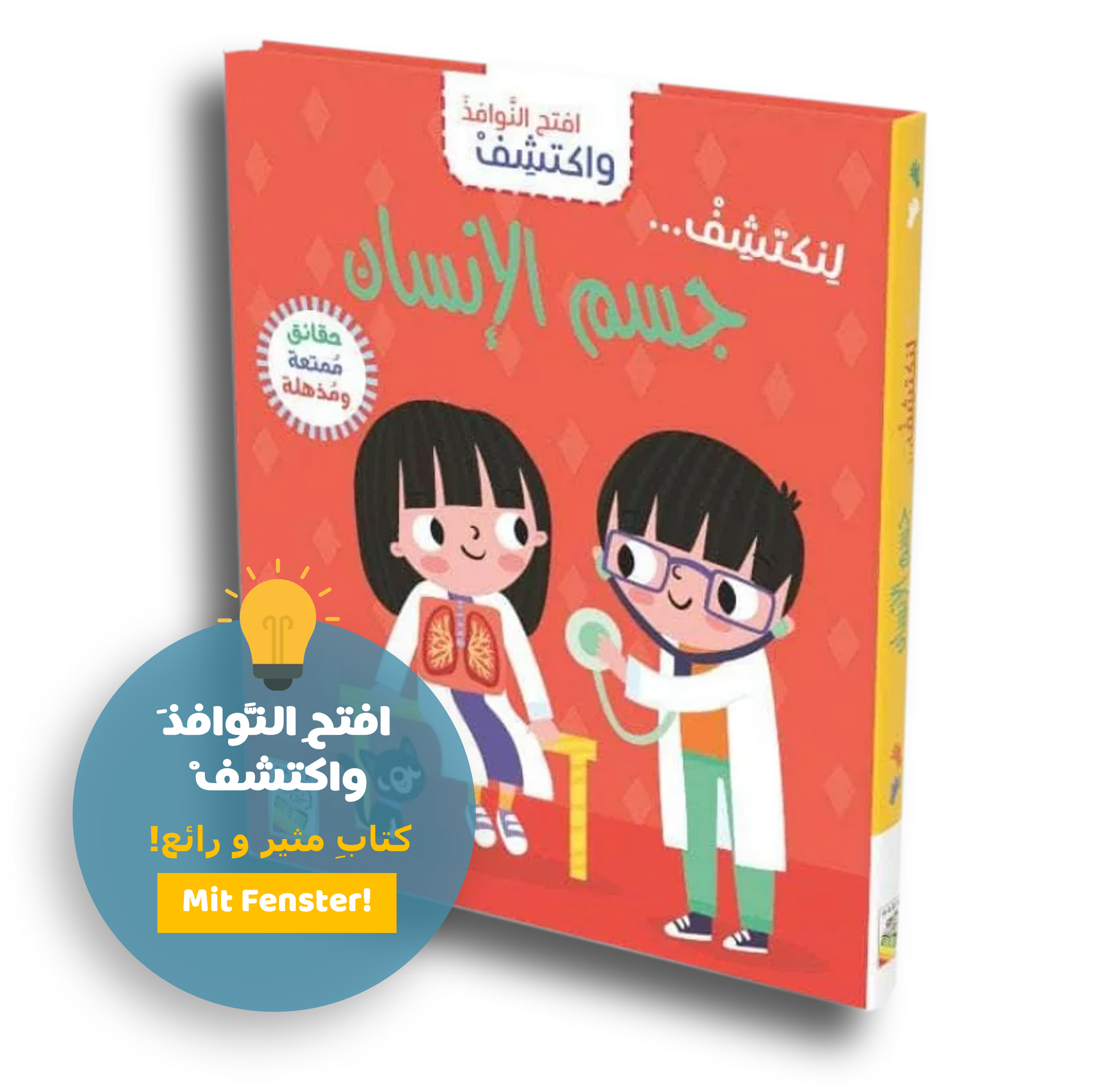 "افتح النوافذ واكتشف" هو كتاب مليء بالمفاجآت والمعلومات الشيقة عن جسم الإنسان. يتيح للأطفال رفع النوافذ الصغيرة في الصفحات، ليكتشفوا ما تخبّئه من حقائق ممتعة عن الجسم