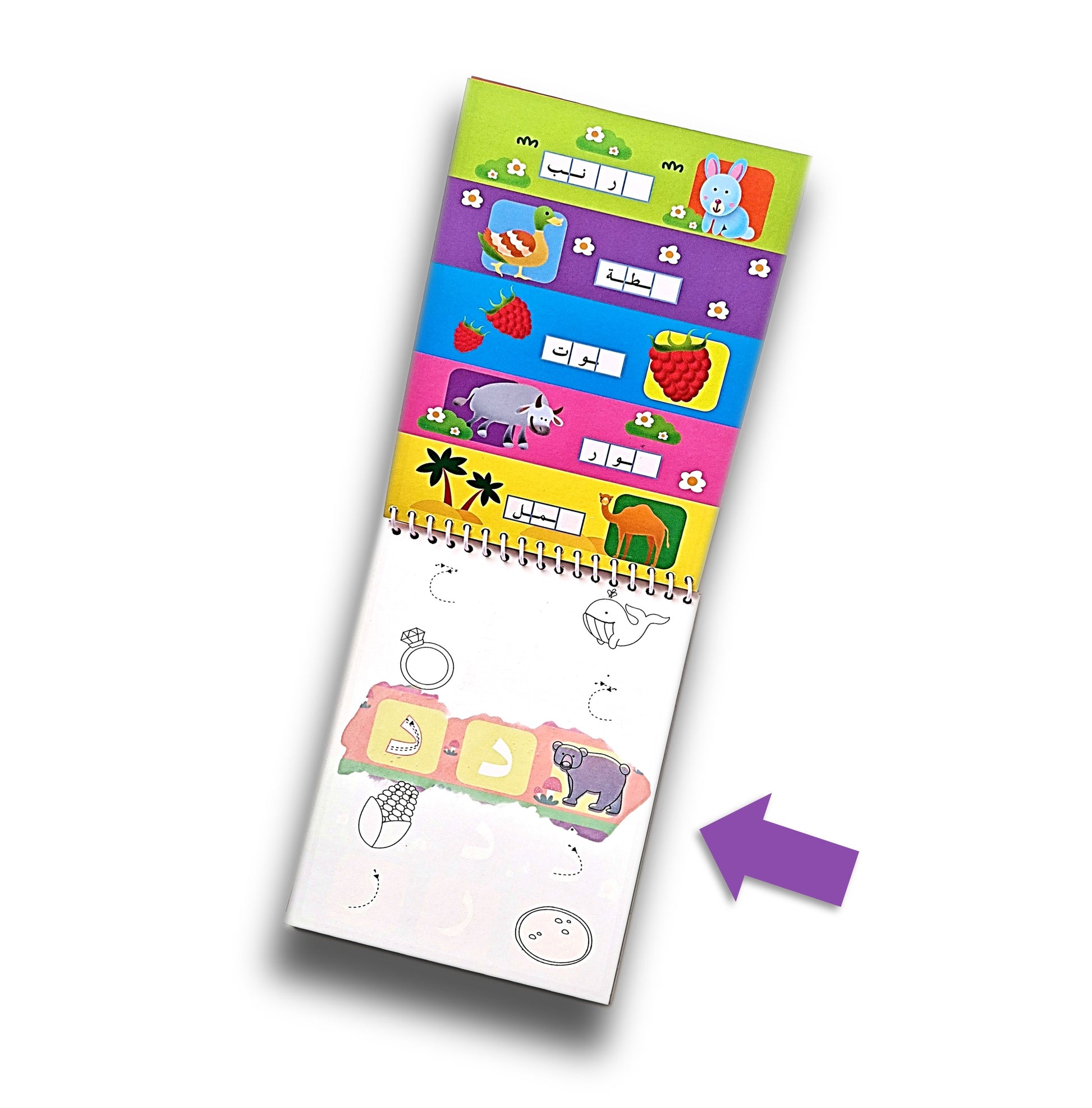 دفتر نشاط لتعلم الحروف و الكلمات العربية. يمكن الأستخدام عدة مرات!يتضمن قلم مائي سحري
